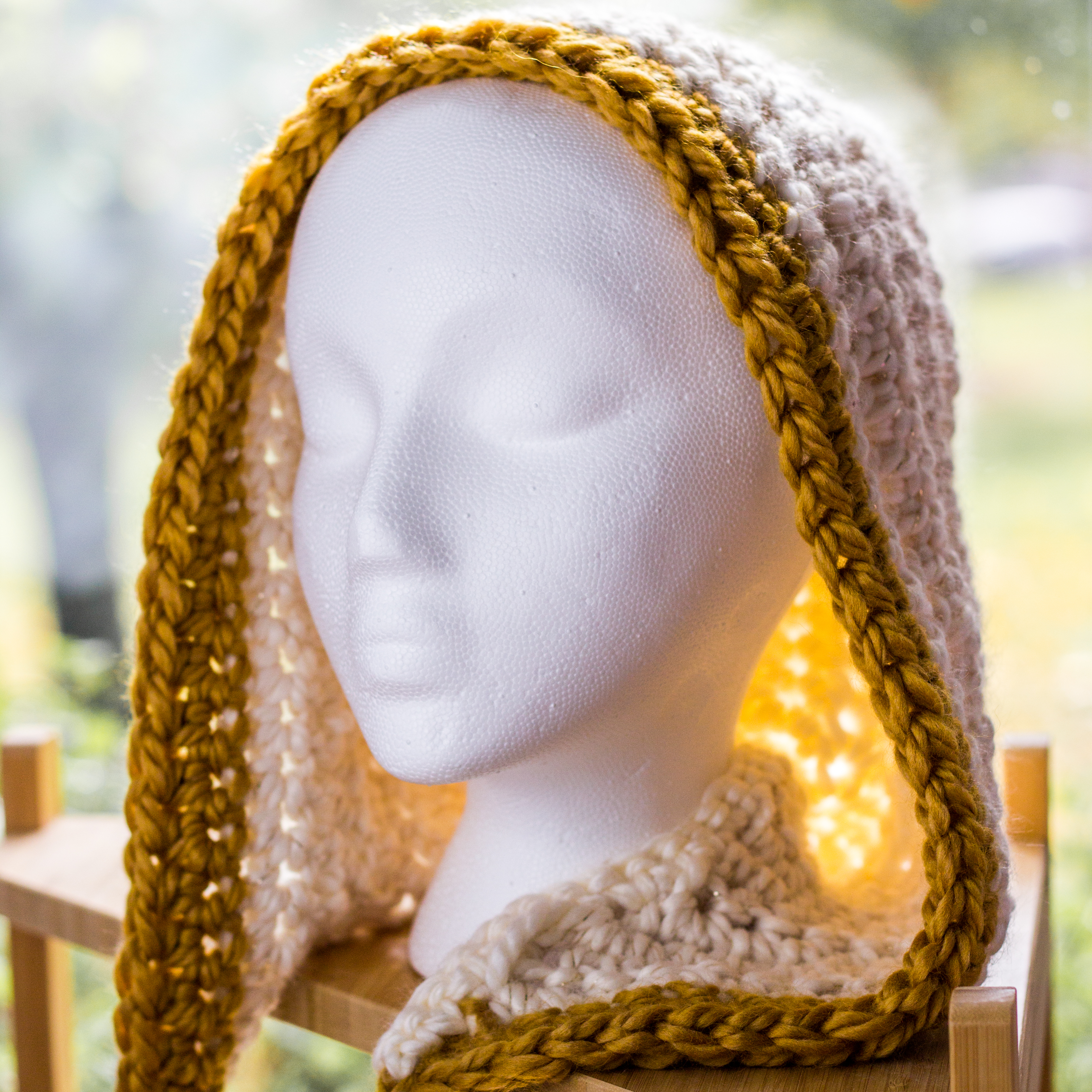 Autumn hoods are loosely stitched and hang beautifully. Their light weight makes them perfect for milder weather. The colour schemes of these hoods tend to be slightly muted and were all inspired by the beautiful tones of autumn. Stay tuned, there are more to come!